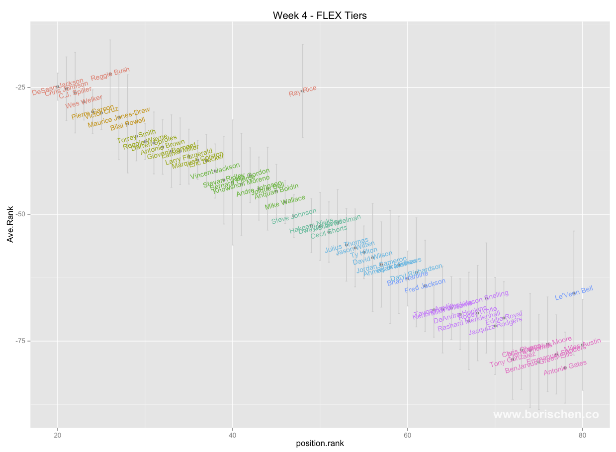 Week 4 Navigation: Intro | QB | RB | WR | TE | Flex | K | DST | PPR | Sunday